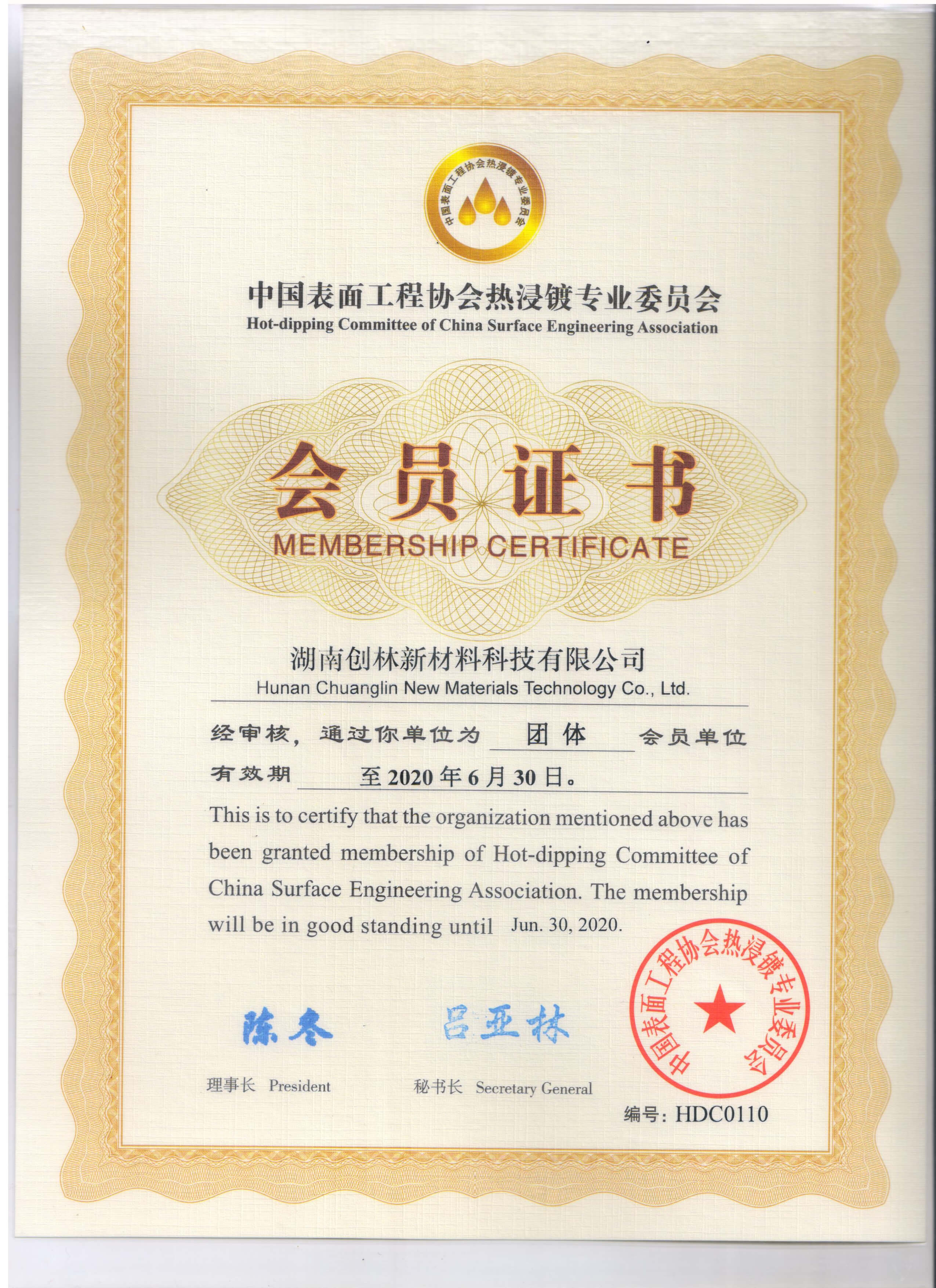 中國表面工程協(xié)會熱浸鍍鋅分會理事長單位